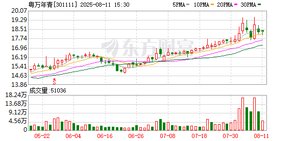 8月11日,粤万年青(301111)发布公告,股东合和投资控股通过大宗交易方式累计减持105万股,占公司总股本的0.6579%,减持计划已实施完毕。