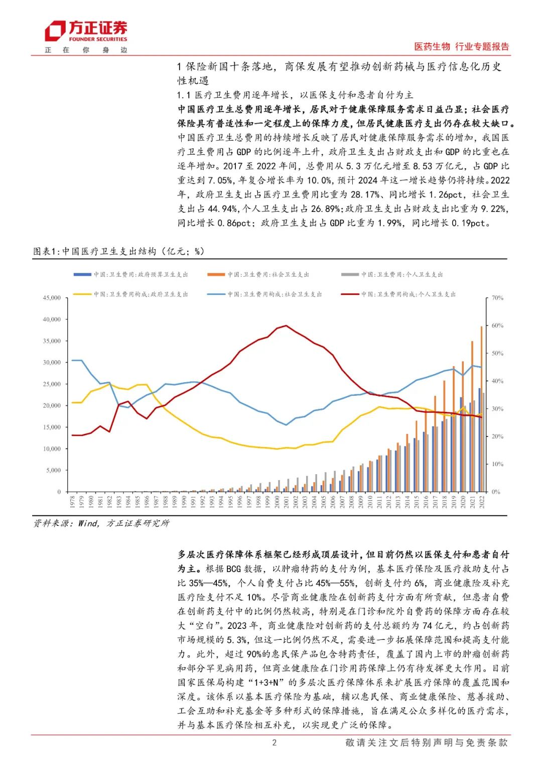 本文来自方正证券研究所于2024年9月19日发布的报告《保险新国十条落地,商保发展有望推动创新药械与医疗信息化历史性机遇》,欲了解具体内容,请阅读报告原文。
